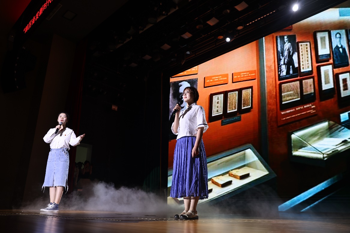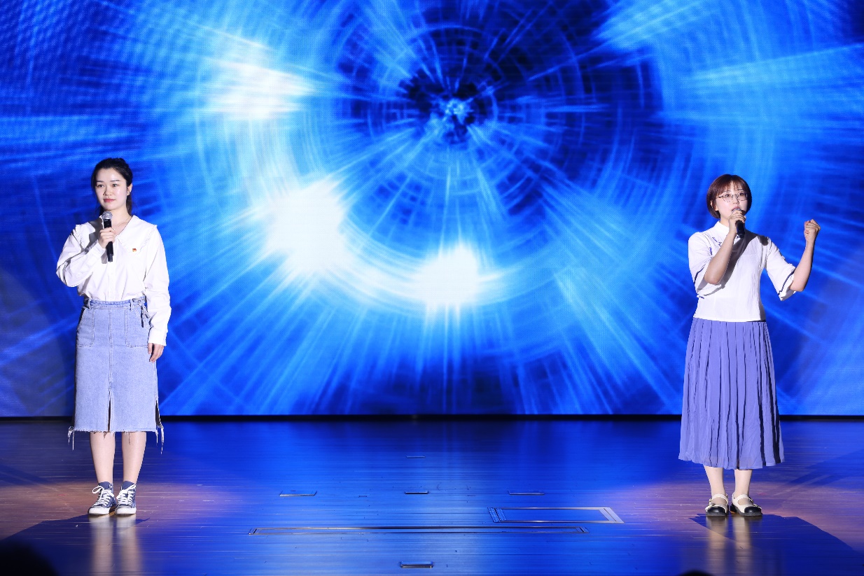 朗诵《青年说》诠释新时代中国青年在面对“天将降大任于斯人”的机遇,应如何以“吾将上下而求索”的决心,“乱云飞渡仍从容”的泰然,“绝知此事要躬行”的担当,接好实现中华民族伟大复兴为己任的接力棒。
