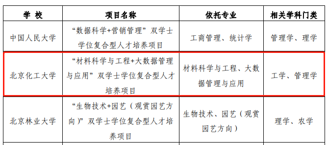 近日,经学校申请、专家论证、审议等相关程序,北京市学位委员会发布了《关于公布2023年度双学士学位复合型人才培养项目及联合学士学位项目名单的通知》(京学位〔2022〕2号)文件。我校申报的“材料科学与工程-大数据管理与应用”双学士学位复合型人才培养项目获批。