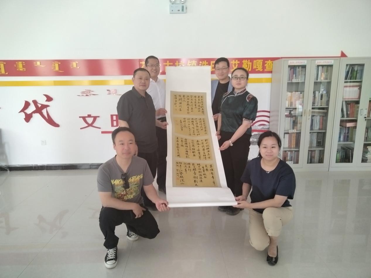 会后,艺术与设计系庄一兵教授代表我校向浩日彦艾勒村村委会赠送了书法作品。