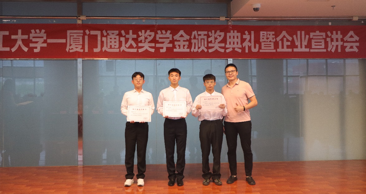 骆杰代表公司向获奖学生表示祝贺,作为校友,他表达了对母校的感恩和祝福,希望以此为契机加强与母校的沟通和联系,同时对学弟学妹寄予殷切希望,期待有更多的学弟学妹加入通达集团共同成长。