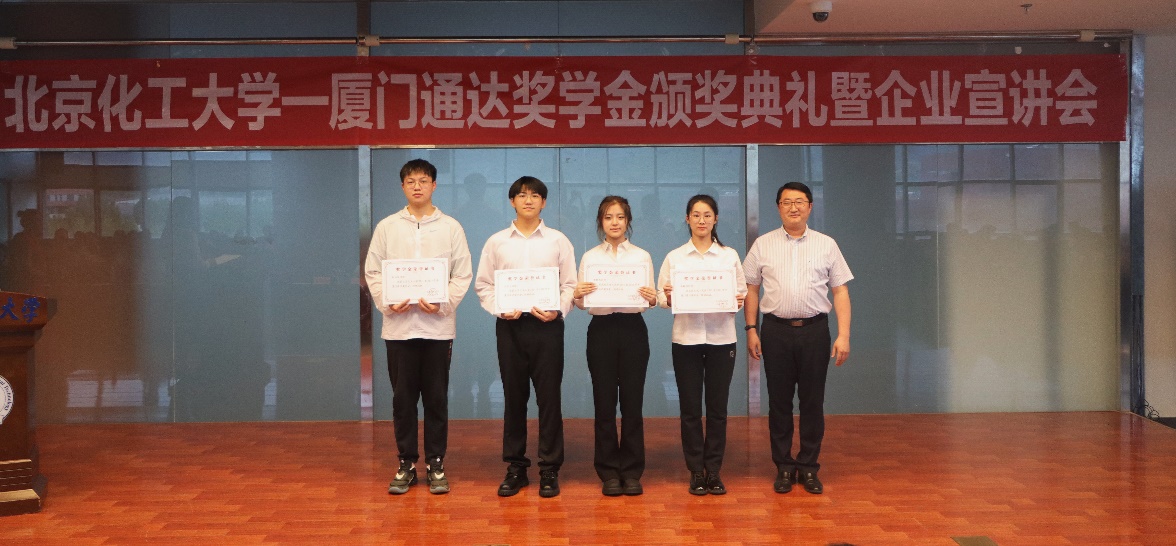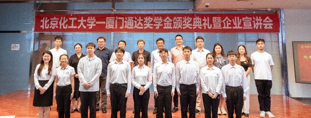 7月6日下午,“北京化工大学—厦门通达奖学金”颁奖典礼暨企业宣讲会在我校昌平校区图书馆学术报告厅举行。通达(厦门)科技有限公司技术总监骆杰先生、人力资源部部长蔡和平先生、管理部部长周姿女士应邀出席,校党委副书记宋来新出席并讲话,信息学院党委书记冯赫、院长王友清、学工办副主任尹平、国内合作交流处副处长张睿、材料学院党委副书记叶欣出席。颁奖典礼由信息学院党委副书记邹海燕主持。
