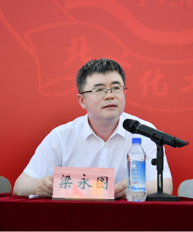 梁永图向军训团、指导员中队、教官中队及蓝色特战队授旗并讲话。他指出,军训是持续深入开展主题教育的重要环节,是大学生必须履行的法定义务,是新生成长“自找苦吃”的必要过程,在期间要不断涵养家国天下的宽广胸怀、吃苦耐劳的崇高品质、敢拼敢闯的人生态度、团结奉献的集体主义精神。他要求各院(系)、部门把“平安军训”放在首位,为学生军训提供优质的保障服务。他强调,全体参训学生要通过军训让最美的青春在北化闪光、在军营闪光,为实现中华民族伟大复兴贡献自己的青春力量!