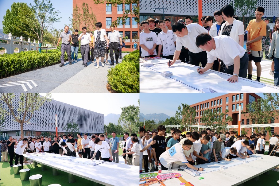 启用仪式后,校领导及学院、部处相关负责人共同参观中心广场。中心广场上还举行了“天工寄语——北化师生寄语最美校园”活动,师生们踊跃参与,在长卷上签下名字,寄托对最美校园的真挚感情、对更美好校园生活的热切期盼以及对学校高质量发展的美好祝福。