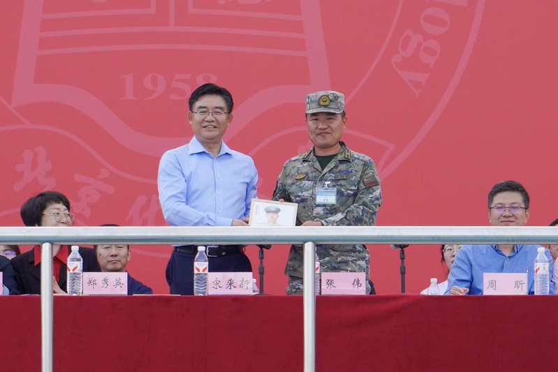 北化新闻网9月29日电 9月28日下午,我校2025级本科生军训结训仪式在昌平校区主运动场举行。校党委副书记宋来新出席仪式并讲话。