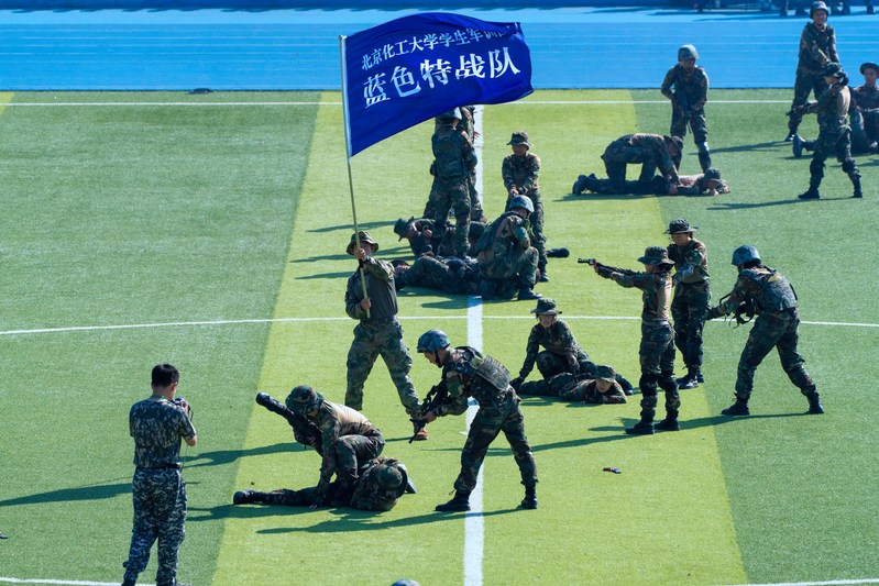 武警北京总队机动三支队全体承训教官参加仪式。学工办、北区办、教务处、后勤保障部等相关职能部门负责人及各院(系)党委书记、院长、学生工作负责人、军训团全体成员参加结训仪式。