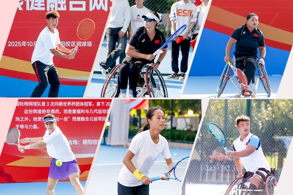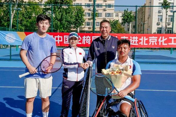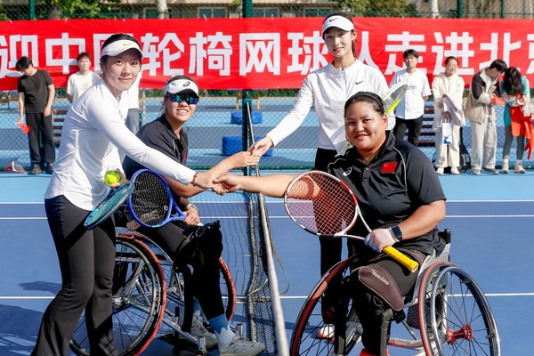 中国轮椅网球队队员、听力网球队队员与学校网球高水平运动员对抗赛