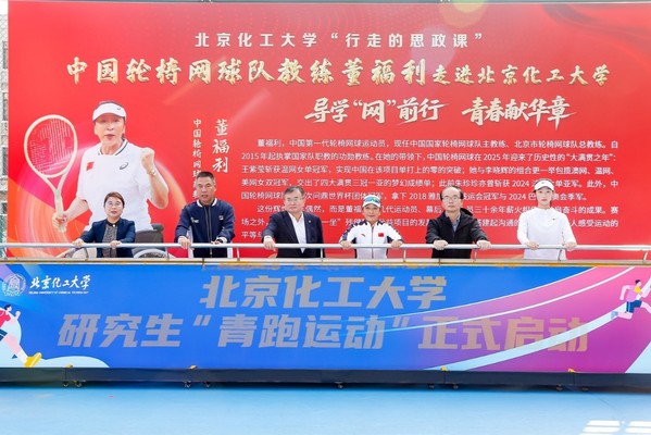 王峰副校长代表学校诚挚感谢中国轮椅网球队教练董福利带队走进北京化工大学。他指出,要以体育精神强健青年“筋骨”,以奔跑姿态开拓科研新局,进一步完善学校研究生体育育人工作体系助力拔尖创新人才培养。引导广大研究生在体育运动中释放压力、挑战自我,将团结协作、顽强拼搏的体育精神迁移到科研攻关之中,让强健的体魄和不屈的意志成为研究生学术道路上行稳致远的“压舱石”和“助推器”。