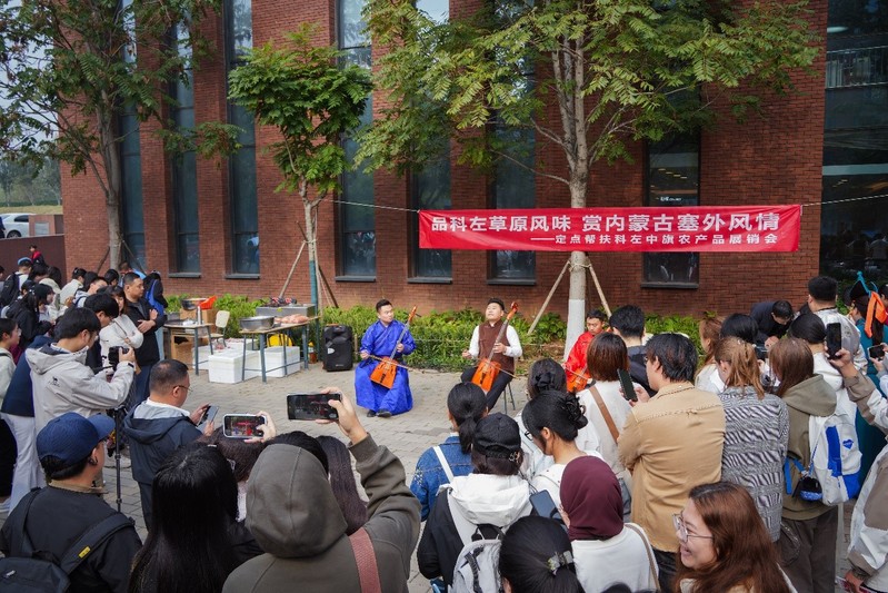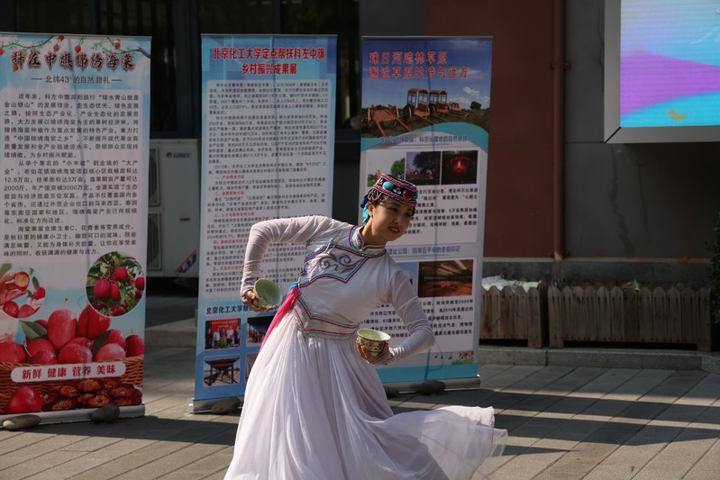 北化新闻网10月21日电 为深入贯彻落实党的二十大和二十届二中、三中全会精神,以及党中央、国务院和教育部党组对巩固拓展脱贫攻坚成果同全面推进乡村振兴有效衔接工作的部署要求,切实推进学校消费帮扶工作取得扎实成效,10月14日和15日,我校联合科尔沁左翼中旗政府在朝阳校区和昌平校区组织开展了“科左味道”—科左中旗特色农产品秋季展销会,科左中旗20余家合作社和农产品企业参加本次展销,科左中旗乌兰牧骑在现场为师生表演了具有浓郁蒙古风情的精彩节目。
