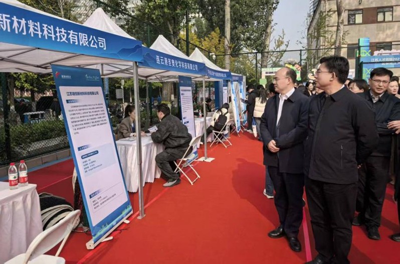 在连云港城市推介会上,连云港市委常委、组织部部长赵云燕详细介绍连云港的人才政策和产业发展情况。她强调,连云港将以真金白银的补助、真招实举的支持、真心实意的礼遇,为各类人才提供广阔发展空间,让每位选择连云港的学子都能感受到“才到港城,价值连城”的诚意。会上,宋来新和赵云燕共同为高校引才工作站揭牌。推介会后,连云港市组织了重点企业专场招聘,提供涵盖石化、新材料、生物医药等领域的优质岗位,与我校毕业生的专业背景高度匹配。