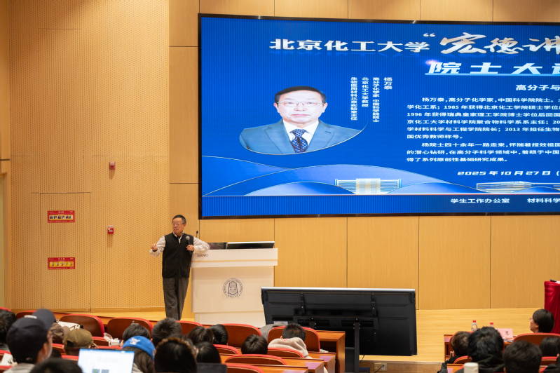 杨万泰院士结合自身学习与工作经历,围绕高分子科学的发展脉络,勉励青年学子通过科研实践锤炼本领,在奋斗征程中增长才干,努力成长为“健康快乐、学用相长、实干报国”的高素质材料人才。结合个人求学和科研经历,杨万泰院士嘱咐青年学子要积极投身科技强国建设,以实干贡献力量,实现个人成长与国家发展的双向赋能;要勇于探索学科前沿,以创新思维驱动高分子材料的产业转化,为科技进步贡献青春力量。此外,杨万泰院士系统梳理了高分子材料学科从基础理论突破到应用技术创新的发展历程,深入解析了高分子材料在服务国家重大战略需求方面的实践成果,并探讨了其在推动人类社会进步中的关键作用。