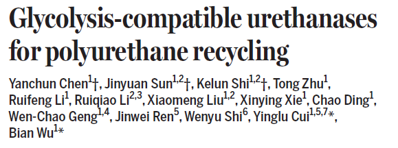 北化新闻网10月31日电 近日,吴边/崔颖璐团队在《科学》(Science)杂志发表题为”Glycolysis-compatible urethanases for polyurethane recycling“的研究论文。研究团队借助人工智能驱动的微生物酶资源挖掘策略,成功发现了一种新型脲酶AbPURase。该酶具有优异的有机溶剂耐受性,在高浓度醇解反应介质中仍能保持极高催化活性与稳定性,与工业聚氨酯醇解工艺高度兼容。这一成果首次实现了在工业条件下聚氨酯的规模化生物解聚,为聚氨酯塑料的绿色循环利用提供了高效、可持续的新路径。