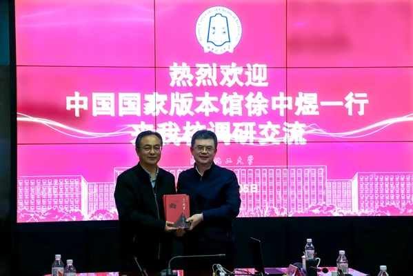 梁永图代表学校对徐中煜一行的到访表示热烈欢迎。他系统介绍了学校的办学历程以及在学科建设、人才培养、科学研究等方面取得的成果。梁永图指出,希望双方发挥各自资源优势,围绕“大思政课”建设、版本资源数字化建设、文化软实力提升、特色版本征集、学生文化素养培养等方面开展合作,共同推动文化传承创新,为教育强国建设注入新动能。
