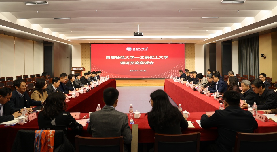 曹文军对北京化工大学长期以来的支持帮助表示感谢,并介绍了首都师范大学的办学历史与特色。她表示,北京化工大学办学历史悠久、办学特色鲜明,特别是近年来学校以高质量党建引领事业高质量发展取得显著成效,有很多值得兄弟高校借鉴的好经验、好做法。希望以此次交流为契机,进一步搭建两校常态化交流机制,进一步深化两校在党建和思想政治工作领域的交流互鉴,共同为新时代首都发展贡献力量,共同为谱写强国建设、民族复兴伟业新篇章贡献力量。