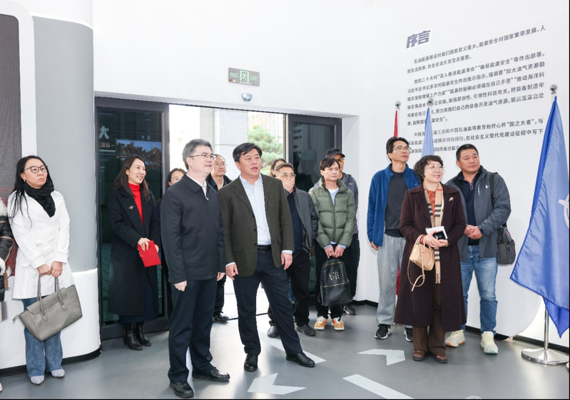 调研期间,韩克飞陪同调研组实地参观了中国石油大学(北京)校史馆与石油精神教育基地。