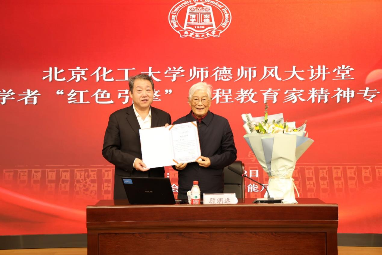 北化新闻网11月17日电 为深入学习贯彻习近平总书记关于教育的重要论述特别是关于实施教育家精神铸魂强师行动的重要指示精神,认真落实教育强国建设规划纲要、三年行动计划和《关于加强新时代高校青年教师队伍建设的指导意见》的工作要求,11月12日下午,学校举行北京化工大学师德师风大讲堂(第一期)暨青年学者“红色引擎”工程教育家精神专题报告会。我国当代著名教育学家、北京师范大学资深教授、国家教育咨询委员会委员、中国教育学会名誉会长、教育部社会科学委员会副主任委员顾明远先生应邀作专题报告。校党委书记刘贵芹主持报告会。校党委副书记崔春花出席报告会。