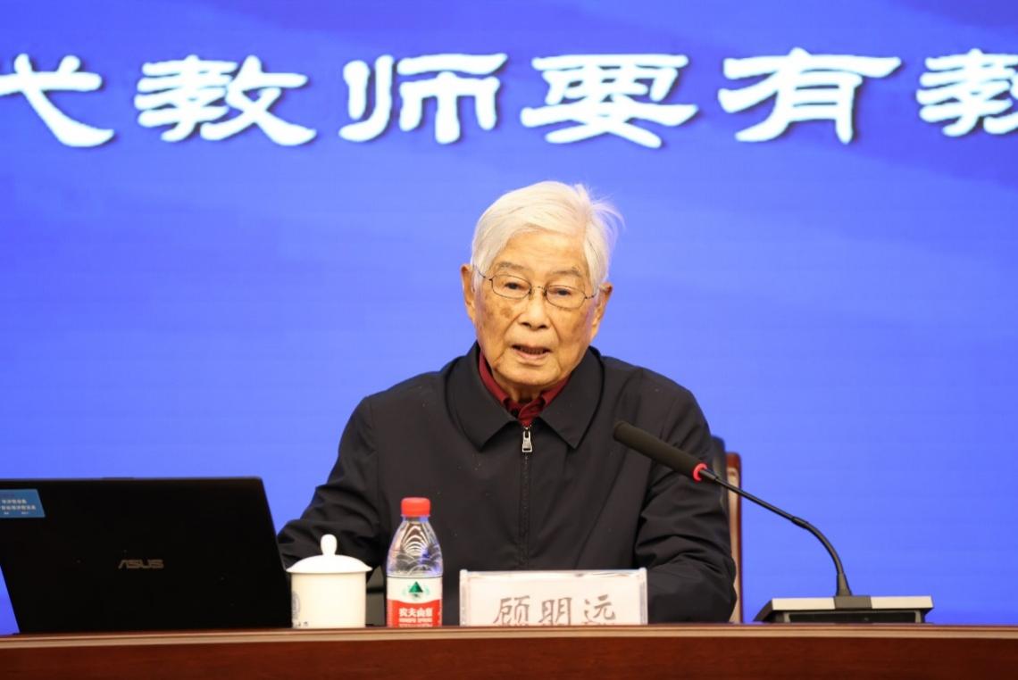 顾明远先生围绕“弘扬教育家精神、担强国建设使命”,从“新时代教师要有教育家精神”的时代必然,到“教育家精神的内涵和榜样”的深刻解读,再到“如何把教育家精神落到实处”的实践路径,为学校教师上了一堂兼具理论高度与实践温度的教育大课。