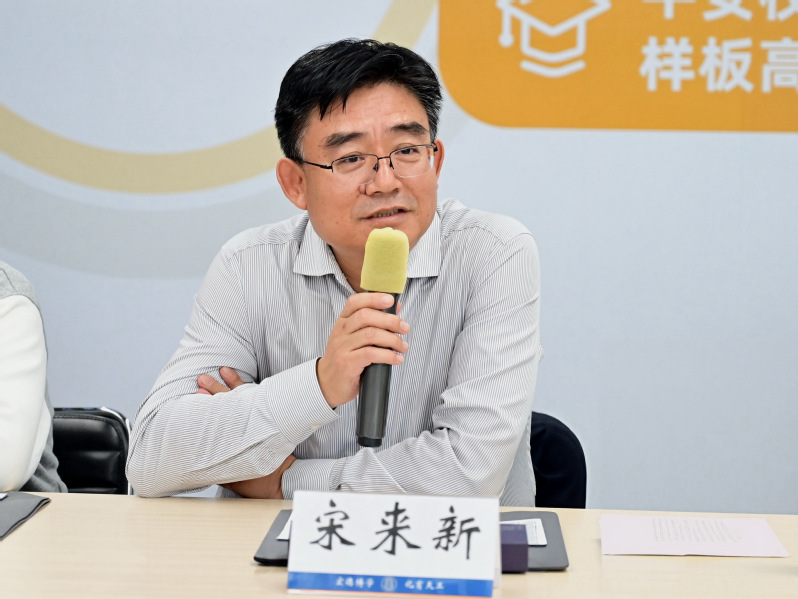 宋来新对调研团一行莅临北化指导表示热烈欢迎,并简要介绍了学校的基本概况。他指出调研团成员都是深耕教育管理领域的专家,具备丰富的理论素养和实践经验,希望大家能够为北化高质量发展提供宝贵意见。