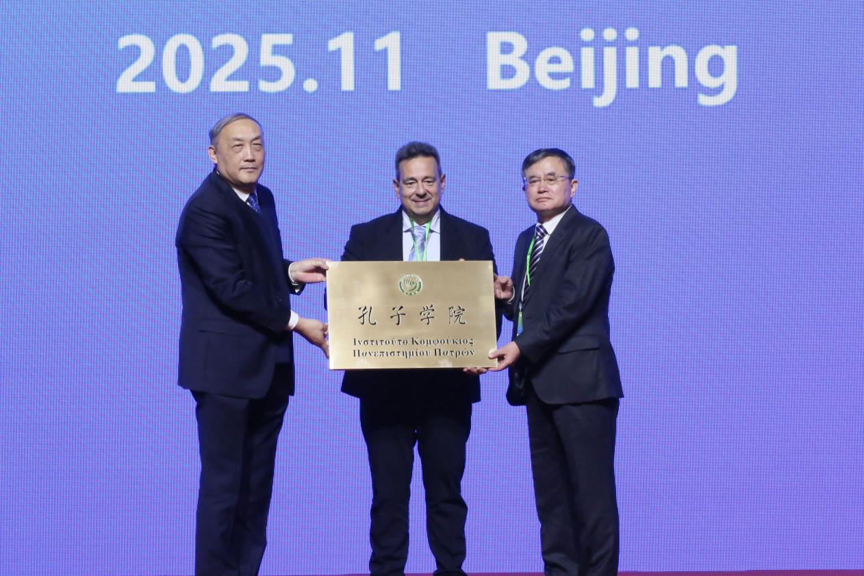 北化新闻网11月18日电 2025世界中文大会于11月14日至16日在北京国家会议中心召开。11月15日上午,“孔子学院的传承与发展-迈进新的20年”专项会议中,举行了2025年新建孔子学院授牌仪式。北京化工大学副校长王峰、希腊帕特雷大学副校长伊安尼斯·韦内蒂斯(Ioannis Venetis)受邀出席授牌仪式,并领取了由中国国际中文教育基金会理事长杨卫颁授的“帕特雷大学孔子学院”铭牌。国际交流与合作处处长张冰及相关工作人员参加了本次专项会议。