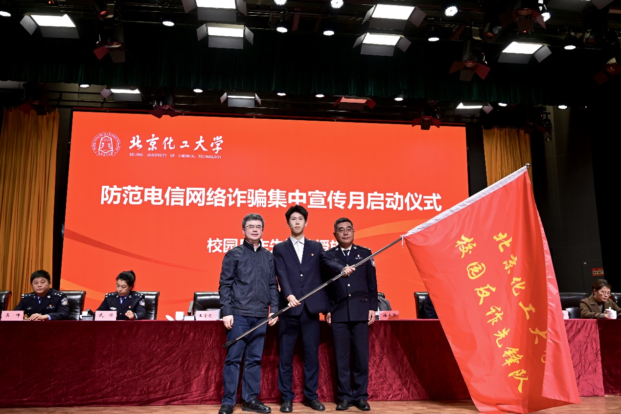 北化新闻网11月20日电 为深入贯彻落实国家关于打击治理电信网络诈骗犯罪的决策部署,扎实推进平安校园建设,11月19日,学校在昌平校区大学生活动中心小剧场举行“反诈校园行,护航青春梦”主题宣传月启动仪式。北京化工大学副校长梁永图、北京市公安昌平分局副局长王学忠、南口镇副镇长海永胜、公安昌平分局内保大队大队长武丽出席活动。