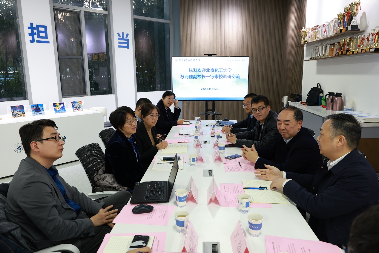 调研期间,苏海佳对三所学校的热情接待及长期以来对北京化工大学的关心支持表示衷心感谢,并简要介绍了学校的校情校况,重点阐述了本科教育教学工作情况及调研目的。她表示,三所高校在本科教育教学领域取得的突出成绩和宝贵经验为北京化工大学制定和完善本科教育教学“十五五”发展规划提供了有益参考,希望进一步深化与兄弟高校的交流合作,携手谱写新时代拔尖创新人才培养事业高质量发展的新篇章,共同为加快建设教育强国作出新的更大贡献。