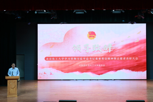 会上,校团委书记徐晓萌宣读了习近平总书记致中国志愿服务联合会第三届会员代表大会的贺信,总结了学校一年以来志愿服务工作取得的成绩,向广大志愿者致以节日的祝贺,希望广大青年志愿者牢记习近平总书记嘱托,大力弘扬志愿精神,积极投身中国式现代化建设的生动实践,努力在服务国家战略、服务百姓民生、服务社会治理中传递真善美,传播正能量,为强国建设、民族复兴伟业贡献志愿服务力量