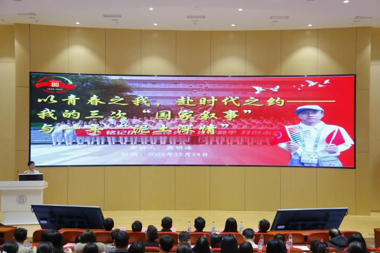 为进一步发挥典型示范作用,用好“大思政课”鲜活教材,学校成立“服务保障抗战胜利80周年纪念活动宣讲团”。活动现场,宋来新为宣讲团成员颁发聘书并授旗。随后,宣讲团成员代表围绕参与服务保障任务的亲身经历进行了集中宣讲,以生动鲜活的实践故事为全体学员呈现了一堂触动心灵的红色实践课。