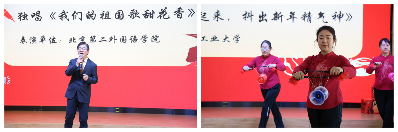 随后,联欢活动拉开帷幕,片组各高校工会选送的歌曲、舞蹈、乐器演奏、空竹表演等节目形式多样、精彩纷呈,赢得了现场一阵阵热烈的掌声,让参加活动的工会干部暂别一年的繁忙,卸下一身的疲惫,用欢声笑语共同拥抱这个难得的温暖时光。