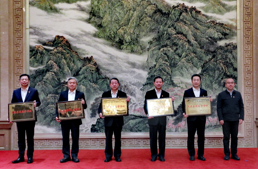 北化新闻网1月14日电 1月13日,第九次北京市党的建设和思想政治工作先进普通高等学校及提名奖奖牌颁发仪式在北京会议中心举行。北京市委常委、教育工委书记于英杰出席颁奖仪式,并宣读了《中共北京市委关于表彰第九次北京市党的建设和思想政治工作先进普通高等学校的决定》,为北京化工大学等5所高校党委书记颁发了第九次“北京市党的建设和思想政治工作先进普通高等学校”奖牌。校党委书记刘贵芹代表学校领奖。