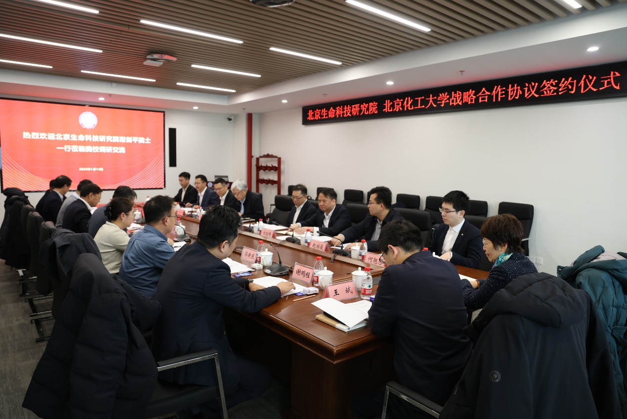 北京生命科技研究院与北京化工大学签订战略合作协议,双方紧紧围绕“四个面向”科技战略方向,本着“立足长远、优势互补、资源共享、协同创新、互利共赢”的基本原则,聚焦双方共同关心的重大问题和重点领域,充分发挥各自优势,共同引领技术创新,开展全方位、多层次、多形式的合作,发展全面战略合作伙伴关系。