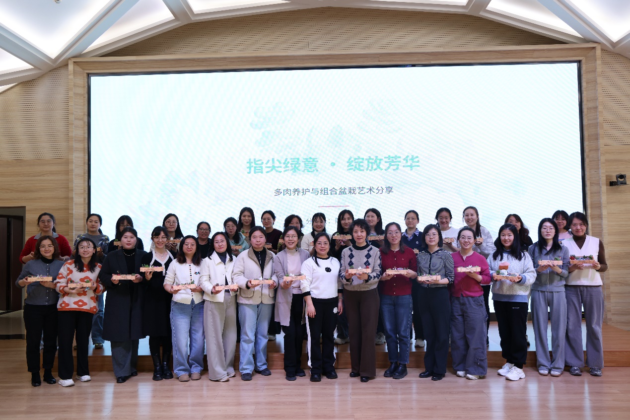 3月6日,校工会联合艺术与设计系工会推出“珠韵流光”艺术手作沙龙,盖娟、冯祖光两位老师带领60余名女教职工开展了情绪串珠体验、永生绒花制作、艺术挂毯编织三场手作活动,参加活动的女教职工兴致高涨,现场充满了欢声笑语,在巧手创作间放松了身心、陶冶了情操。3月9日,校工会还联合后勤工会推出“指尖绿意·绽放芳华”多肉盆栽DIY手工活动,后勤集团特别邀请了园艺专家周晓杰老师(享受政府特殊津贴、获得北京“大工匠”荣誉称号)进行现场指导,50余名女教职工参与活动,了解花草种植知识,还精心搭配,将热爱与巧思融入盆栽创作中。活动结束后,大家还能将自己亲手种植的多肉作品带回办公室,在工作之余精心养护,从中获得源源不断的快乐与满足。
