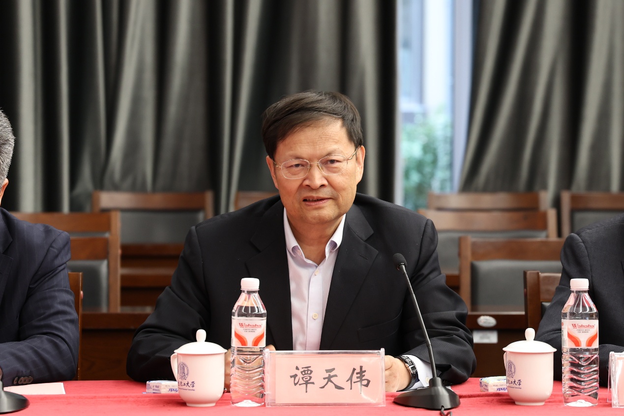 谭天伟对陈荣伟、刘静一行来访交流表示热烈欢迎,并简要介绍了学校近年来在学科建设、科研创新及人才培养等方面取得的标志性成果。他表示,湘潭大学底蕴深厚、文脉绵长,近年来在计算数学、绿色化工等领域成果斐然,两校在化学、化工、环境等学科领域保持长期合作。他表示,未来两校要进一步建立健全常态化、长效化沟通协助机制,紧扣国家重大战略需求,聚焦区域高质量发展与行业转型升级,充分发挥各自学科优势,凝聚工作合力,在学科交叉融合、人才协同培养等关键领域携手实现新突破。