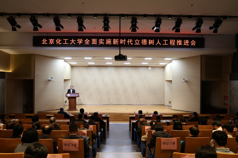 北化新闻网4月8日电 4月3日下午,北京化工大学全面实施新时代立德树人工程推进会在朝阳校区学术报告厅举行。校党委书记刘贵芹出席会议并讲话,校党委副书记宋来新,党委常委、副校长梁永图,副校长苏海佳出席会议,党委常委、副校长王峰主持会议。