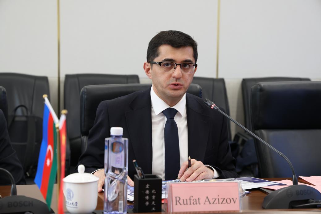 Rufat Azizov致辞,对我校的热情接待表示衷心感谢,并详细介绍了ASOIU的办学特色、学科布局与国际合作成果,高度认可我校在化工、材料、能源等领域的学科实力与人才培养质量。ASOIU高度重视与我校的合作,期待以此次会谈为契机,加快推进合作项目实施,推动双方实现优势互补、协同发展,共同培养更多具备国际视野和专业素养的优秀人才,助力两国能源化工领域高质量发展。