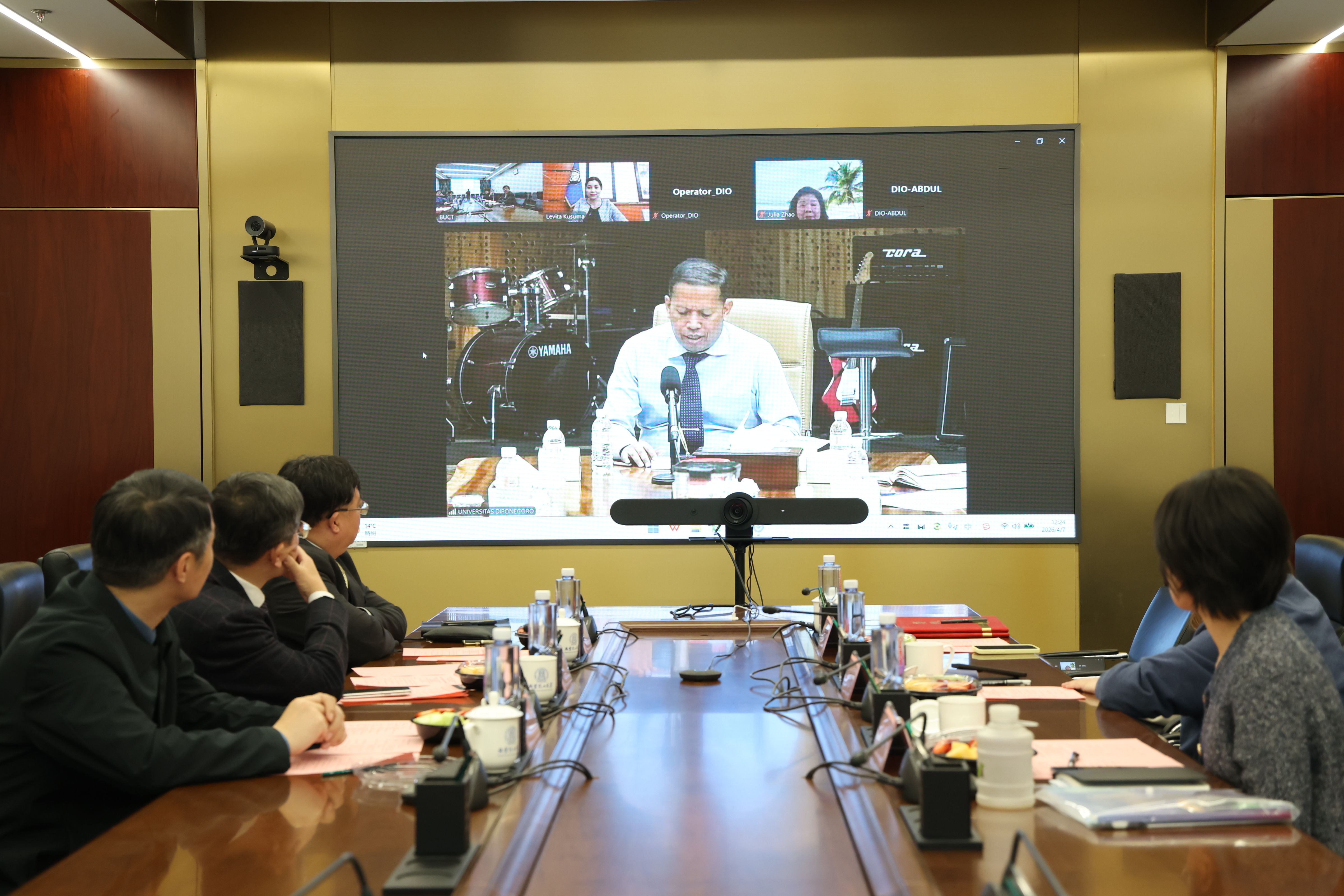 仪式中,全体与会者一同观看了迪波内戈罗大学的学校介绍视频,从而直观地知晓该校的办学历程、学科长处、校园文化以及国际合作成绩。接着,在全体与会者的共同见证下,王峰副校长和Prof. Dr. Suharnomo, SE, M.Si共同签署了《北京化工大学与迪波内戈罗大学本科双学位项目合作协议》,而后合影留念,记录两校合作的重要瞬间。
