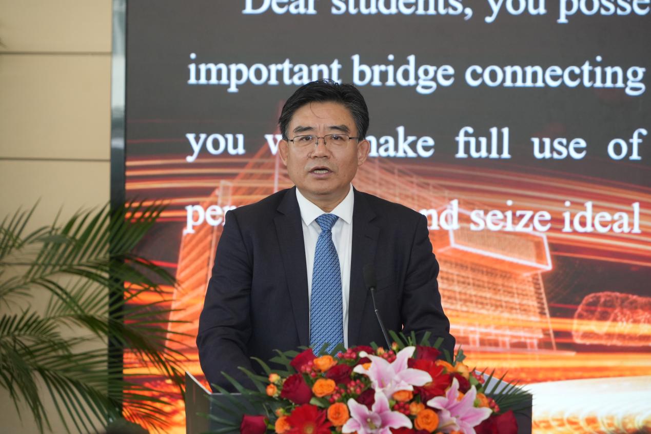 宋来新在致辞中指出,今年活动全面升级为“国际人才双选会+学职发展创新论坛”,并成功纳入中国国际服务贸易交易会——中国对外开放三大展会平台之一的常态化活动及北京市教委“留学北京”校企合作平台。他强调,国际人才兼具多语言能力与跨文化视野,是连接世界的重要桥梁,希望同学们充分利用平台把握机遇;同时呼吁企业与高校深化务实合作,共同赋能国际人才成长。