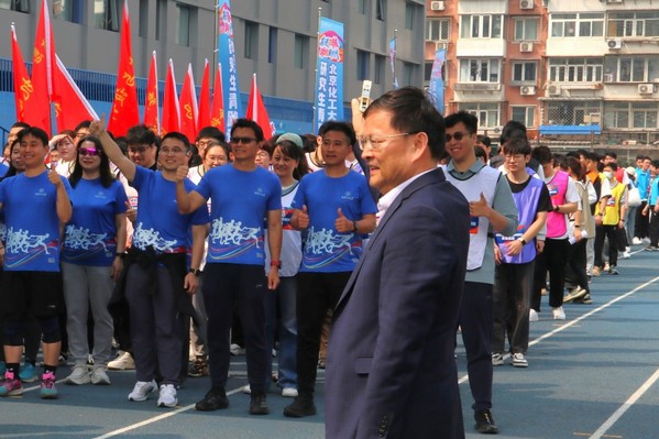 北化新闻网4月16日电  4月15日下午,学校举行第七届研究生“奋进正青春、助跑新时代”青跑运动开幕式,主会场设在朝阳校区,三校区同步开跑。校长、中国工程院院士谭天伟,校党委常委、副校长王峰出席活动。五百余名师生代表齐聚起跑线,用奔跑诠释北化学子的奋进之志,以实际行动践行“健康第一”理念。