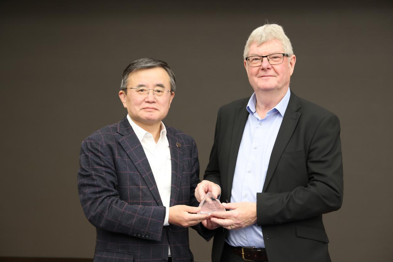 讲座结束后,王峰与David Cardwell院士进行了会谈。王峰介绍了我校当前与剑桥大学合作情况,并表示,未来双方可以在学术交流、学生海外学习项目等领域深化合作。David Cardwell院士对我校的热情接待表示感谢,并表示期待未来与我校开展更多实质性合作。