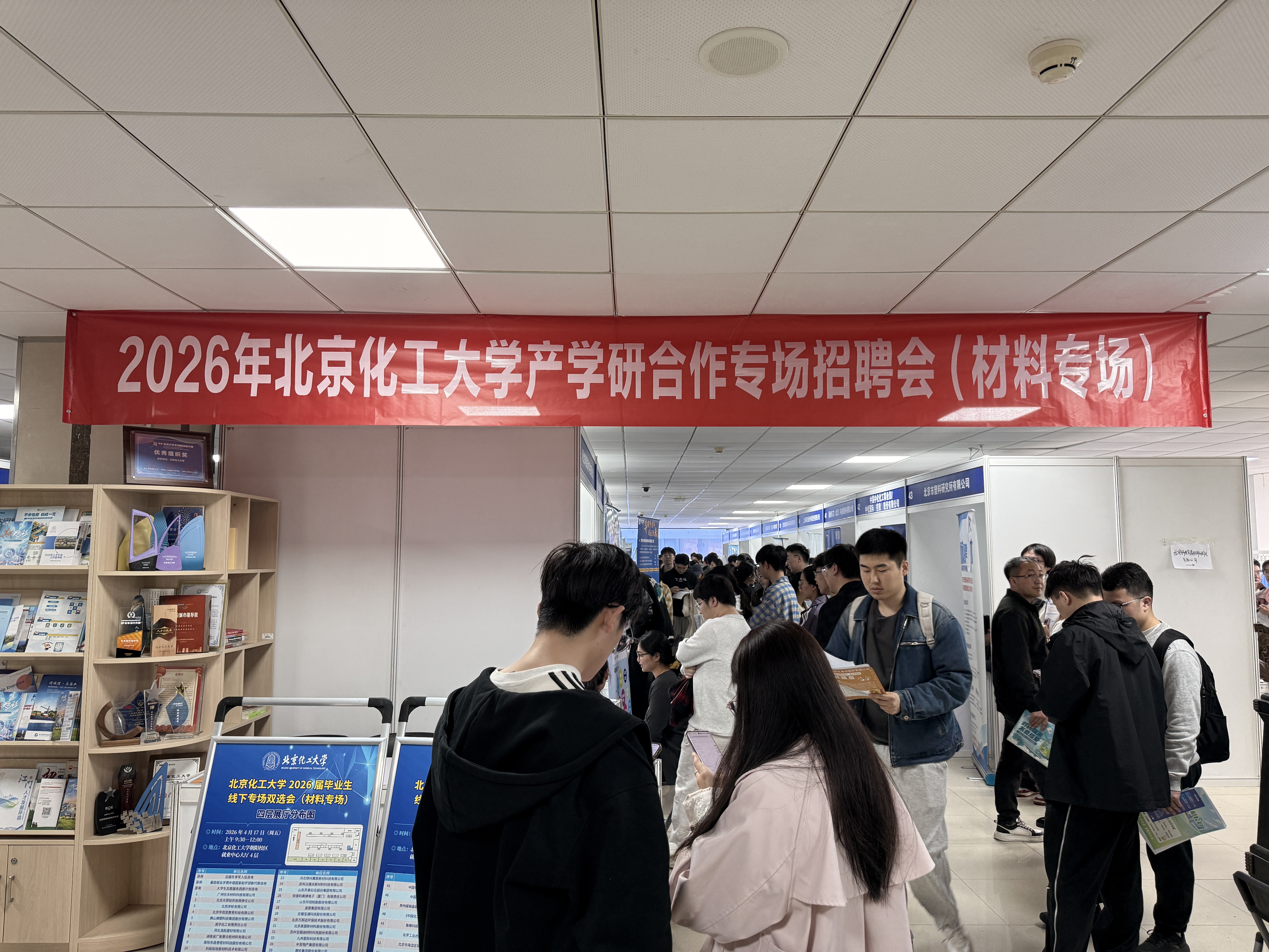 4月17日上午,产学研专场招聘会(材料专场)在朝阳校区就业中心大厅举行。产学研专场招聘会顺利举行,74家设奖单位或产学研合作单位参加校园招聘,提供岗位1700余个,涵盖多个专业领域,为不同专业背景的学生提供了丰富的就业选择,进一步推动了人才培养与产业需求的精准对接。
