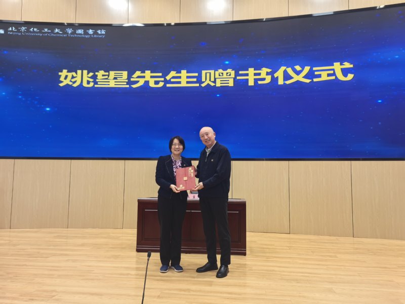 捐赠仪式上,姚望先生向我校图书馆捐赠其个人著作《数据大时代》,苏海佳代表学校接受捐赠并向姚望先生颁发捐赠证书。