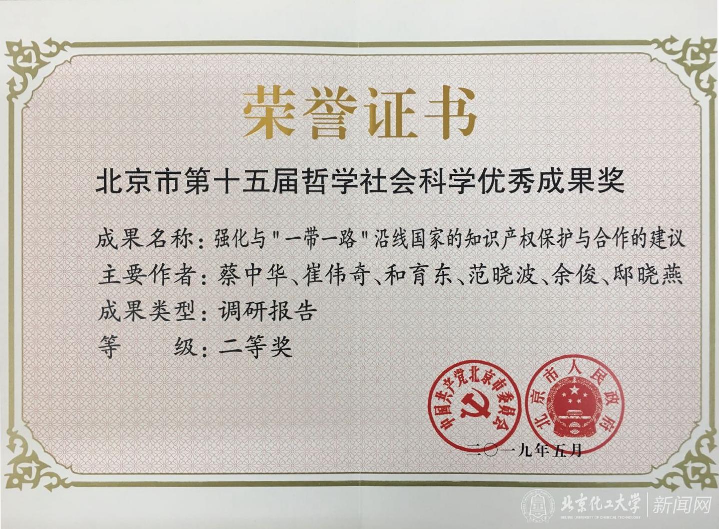 我校蔡中华教授获得北京市 第十五届哲学社会科学优秀成果二等奖