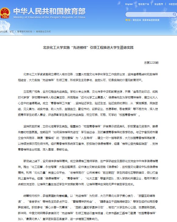 教育部大学生思政教育工作简报专题报道我校“先进榜样”引领工程