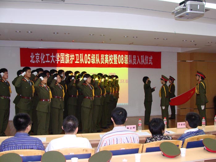 我校国旗护卫队举行05级队员离校暨08级队员入队宣誓仪式
