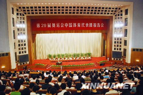 我校学生在人民大会堂聆听第29届奥运会中国体育代表团报告会