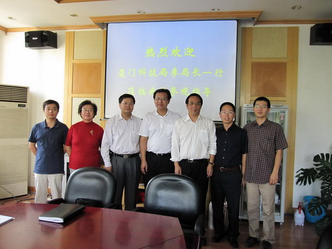 2009年9月14日下午,厦门科技局李伟华局长和国际科技合作处吴志伟副处长一行莅临我校访问交流。陈标华副校长和谭天伟副校长、生命学院张丽叶书记、科技处曹兵处长和张新生副处长、生命学院邓利副院长与科技局李局长进行了友好交流。首先,陈标华校长和谭天伟校长与李伟华局长分别就北京化工大学与厦门科技局共建的“北京化工大学厦门工业生物转移中心”工作进展交换了意见。李局长对我校在厦门成立技术转移中心表示欢迎,并表示全力支持中心的各项工作运行,校领导对厦门科技局支持建设中心表示衷心的感谢,并表示积极推动中心开展各项科研技术服务工作。随后,双方领导交流了技术转移中心的使命和责任,讨论了中心的工作重点及发展方向,并对中心提出了以下三点希望,第一:中心必须以企业为主体、市场为导向,充分利用当地丰富的资源,重点发展相关产业如海洋生物质、食品、生物医药等;第二,利用化工大学雄厚的科技力量,通过中心对厦门当地企业进行人才培养,提升企业的科研创新水平;第三,通过中心不断的发展,建设相关行业关键技术应用平台(如工业生物技术),为企业的科技创新提供技术平台,为企业和学校的人才培养提供实践培训基地。