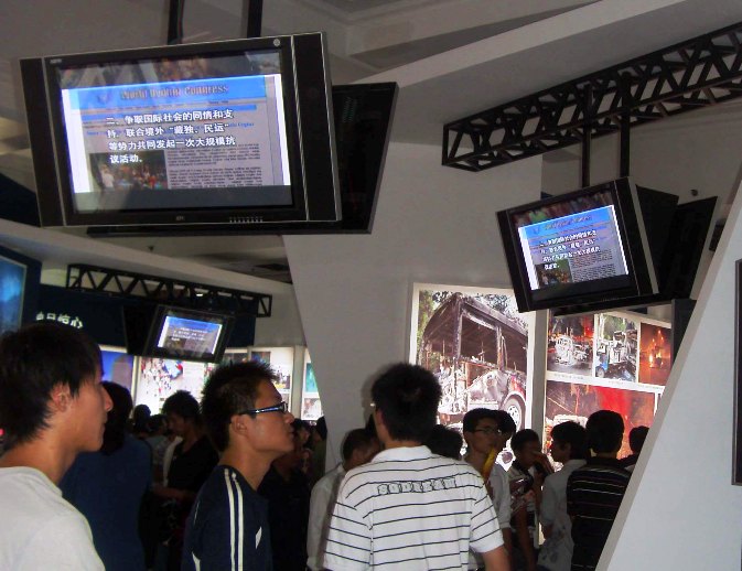 在平息乌鲁木齐“7.5”打砸抢烧严重暴力犯罪事件纪实图片展览中,400多幅真实的图片从真相、真诚、真情、真谛四个部分,愤怒声讨以“世维会”为代表的境内外“三股势力”的残忍暴行和滔天罪行,深入揭批热比娅之流的丑恶嘴脸,大力讴歌人民卫士忠于党和人民、献身使命的英雄主义精神。