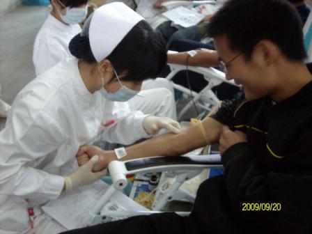 这次无偿献血活动在北校区的成功举办,不但在新生中宣传普及了《义务献血法》,更为国庆期间的临床用血提供了一份保障,是我校学子用实际行动为祖国60华诞献上的一份特殊礼物。
