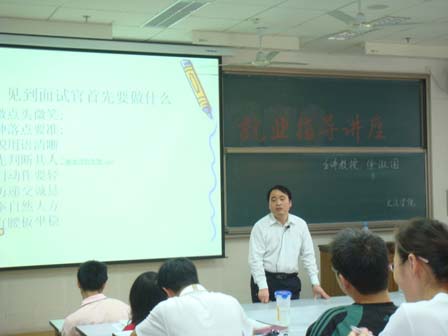 2009年9月23日下午2:00—4:30,应文法学院邀请,北京百科大学生就业指导训练中心主任徐淑国教授及行政部部长曹亮老师在北京化工大学科教楼202室做《关于在就业中的面试、简历的书写、就业信息的检索等》的讲座,文法学院06级毕业生及信息学院、理学院、材料学院部分同学积极响应,热情参加,会场气氛活跃。