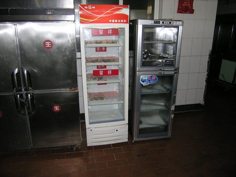 联合检查组对食堂操作间、就餐大厅、冷荤间、餐具洗消、米饭生产线以及库房等场所进行了检查,各餐厅均能按照《食品安全法》和餐饮服务中心的相关制度要求,做到生、熟容器严格区分、定位存放,熟食、半成品和生食分间操作,落实了食品留样制度及餐具消毒制度。