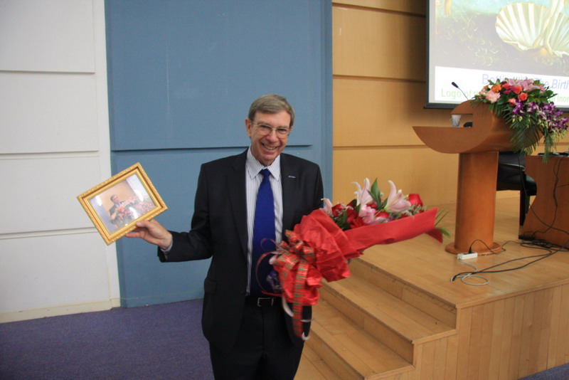 报告会在会议中心学术报告厅举行,由汪文川教授主持。首先汪教授致欢迎辞,并介绍了David Garner教授的学术生涯,接着,David Garner教授以他二十多年来的研究领域为切入,为同学们展现了一个有机环境中奇妙而多彩的无机世界,如钾、镁离子作为酶的活性中心是如何在许多器官组织催化中发挥神奇作用的,他还结合大家日常生活中所接触的事物举例和说明了科学的价值和魅力,深深吸引了在场的同学。报告结束后,同学们积极地提问,与David Garner教授交流了包括生物无机化学方面、求学道路和人生规划等问题,会场不时传来阵阵笑声和掌声。最后,我校学生代表向David Garner教授送上了鲜花和在我校讲学的留影。