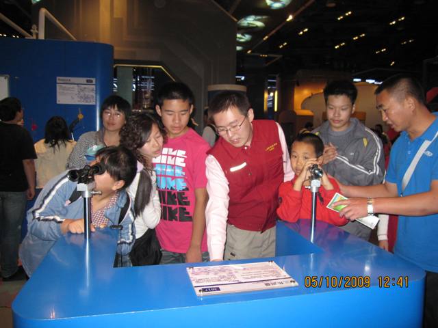 黄金周期间的中国科学技术馆人头攒动,观众络绎不绝。我校志愿者的主要服务内容包括维持参观秩序、进行仪器设备和实验的讲解等方面。在志愿者们的热情服务下,观众们有序参观、文明操作,在娱乐中学习体会科普知识,整个科技馆内秩序井然,气氛和谐。灿烂的微笑、熟练的解说、周到的服务,志愿者们无私奉献的精神和专业干练的态度受到了大家的一致好评。志愿者们纷纷表示,此次志愿服务活动的开展,不仅帮助了别人,而且也从中收获了感动与快乐,同时,为能够以实际行动为祖国60华诞作出自己的贡献而感到无限光荣。